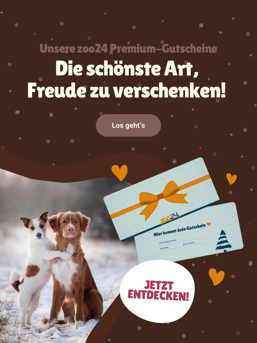 Mit unseren zoo24 Geschenkgutscheinen verschenkst du pure Freude – denn Leckereien oder Zubehör für Haustiere kommen immer gut an! Wähle zwischen einem digitalen Gutschein oder einer gedruckten Karte, die du per Post erhältst und schenke deinen Liebsten ein unvergessliches Shoppingerlebnis.