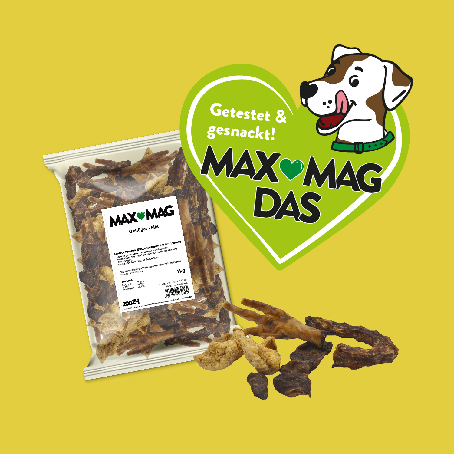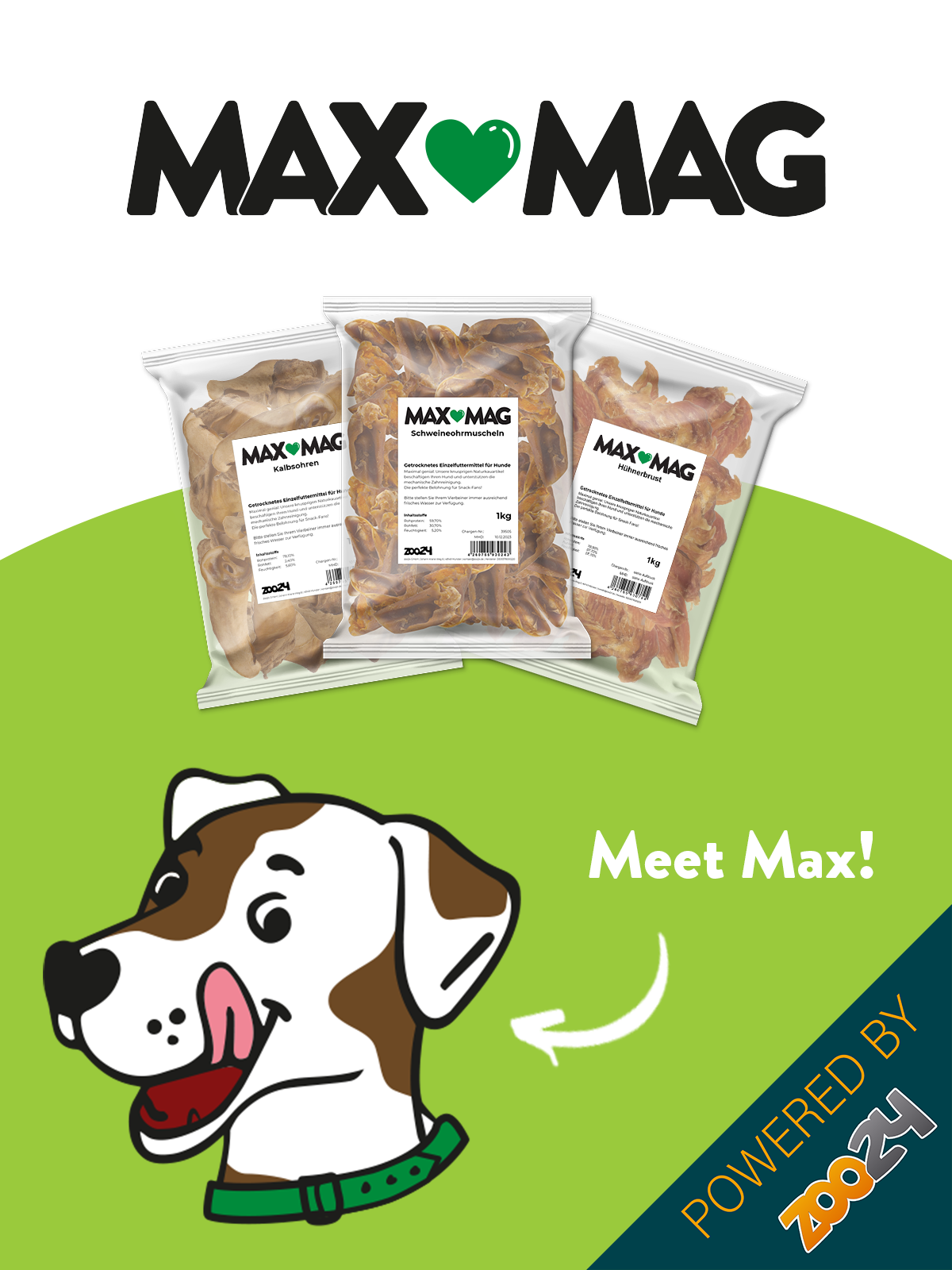 MAX MAG hat sich auf schmackhafte, schonend getrocknete Snacks mit intensivem Geschmack spezialisiert. Diese gibt es in vielen verschiedenen Sorten, z.B. vom Schwein, Rind, Kaninchen oder Huhn.