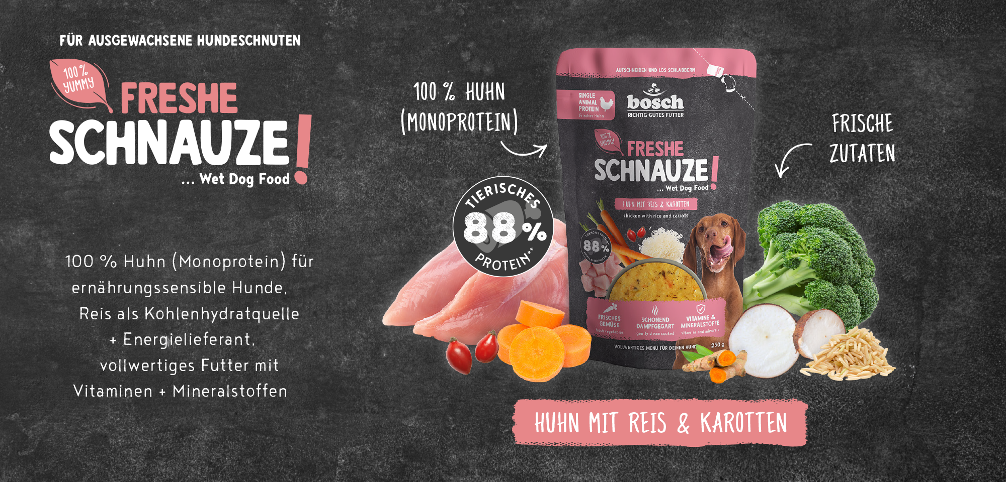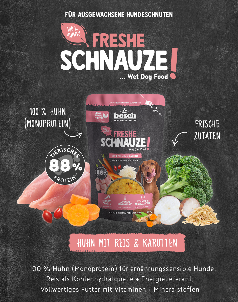Bewertungen bosch Freshe Schnauze Nassfutter - Huhn mit Reis & Karotten 250 g