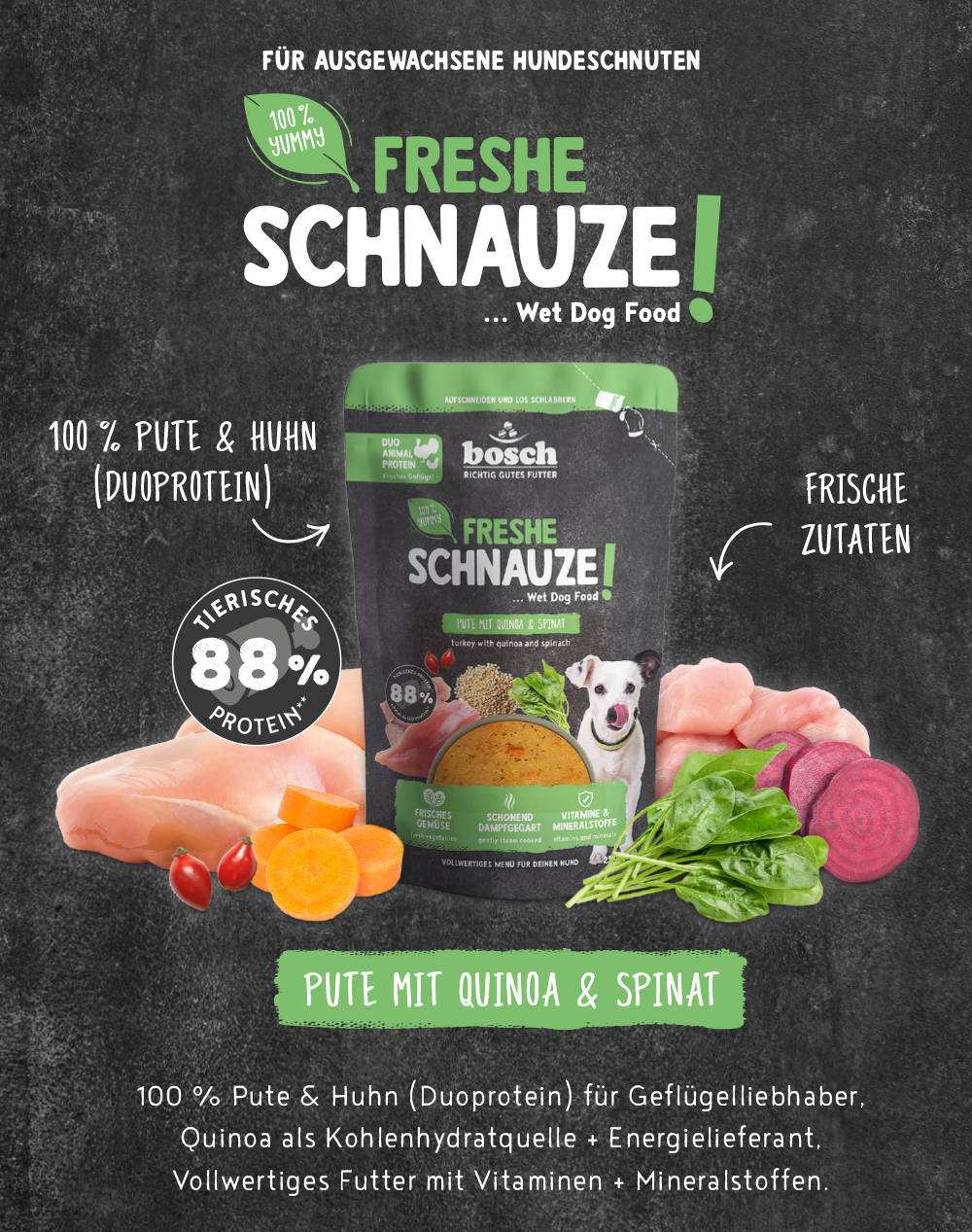 Bewertungen bosch Freshe Schnauze Nassfutter - Pute mit Quinoa & Spinat 250 g