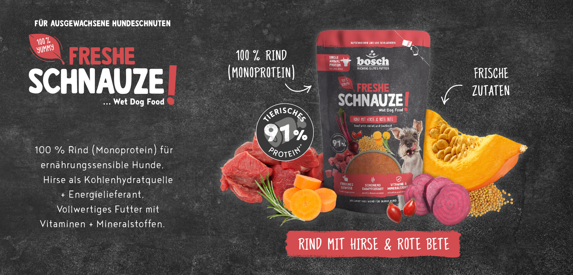 bosch Freshe Schnauze Nassfutter - Rind mit Hirse & Rote Bete 250 g