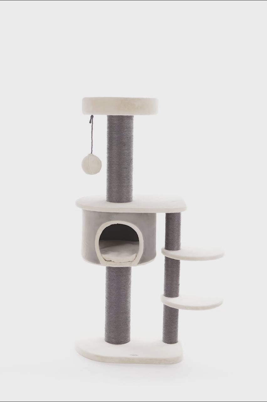 Kratzbaum mit Kuschelbett und Wendekissen.