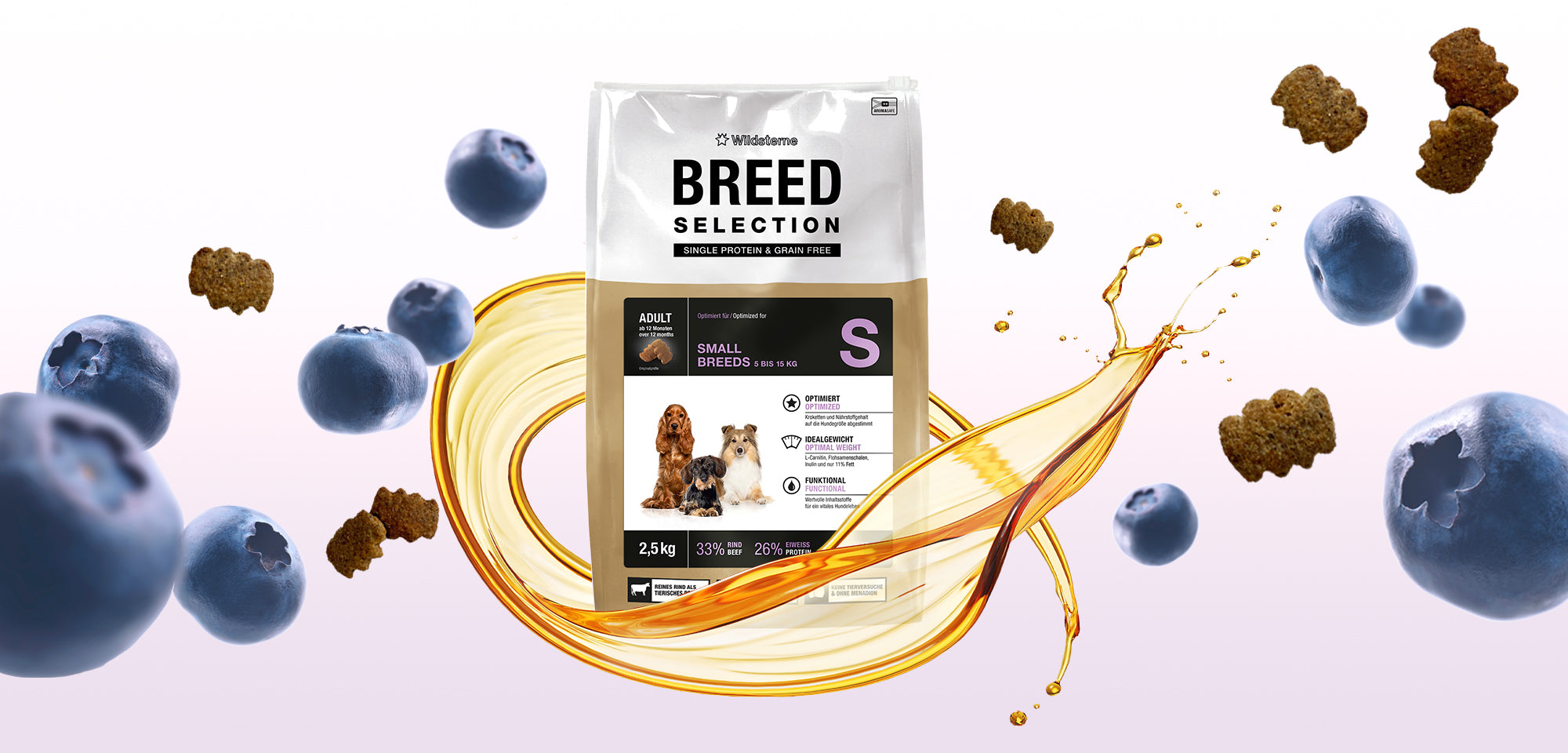 Breed Selection Adult S ist optimiert für kleine Hunderassen, unterstützt die Erhaltung des Idealgewichts und enthält wertvolle funktionale Inhaltsstoffe.